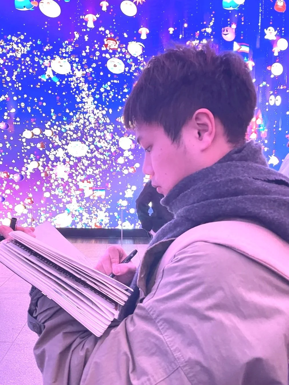 Inspired by nature and overlooked world, his work combines layered processes with a raw but gentle visual language, often exploring subtle and sensitive themes. He enjoys working across both digital and traditional media, and is currently experimenting with printmaking techniques including screen printing, and mono print.